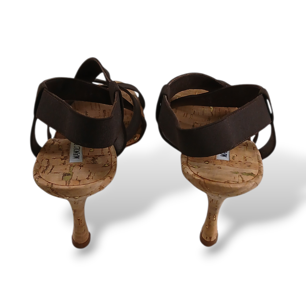 Sandália Manolo Blahnik Marrom Elástico