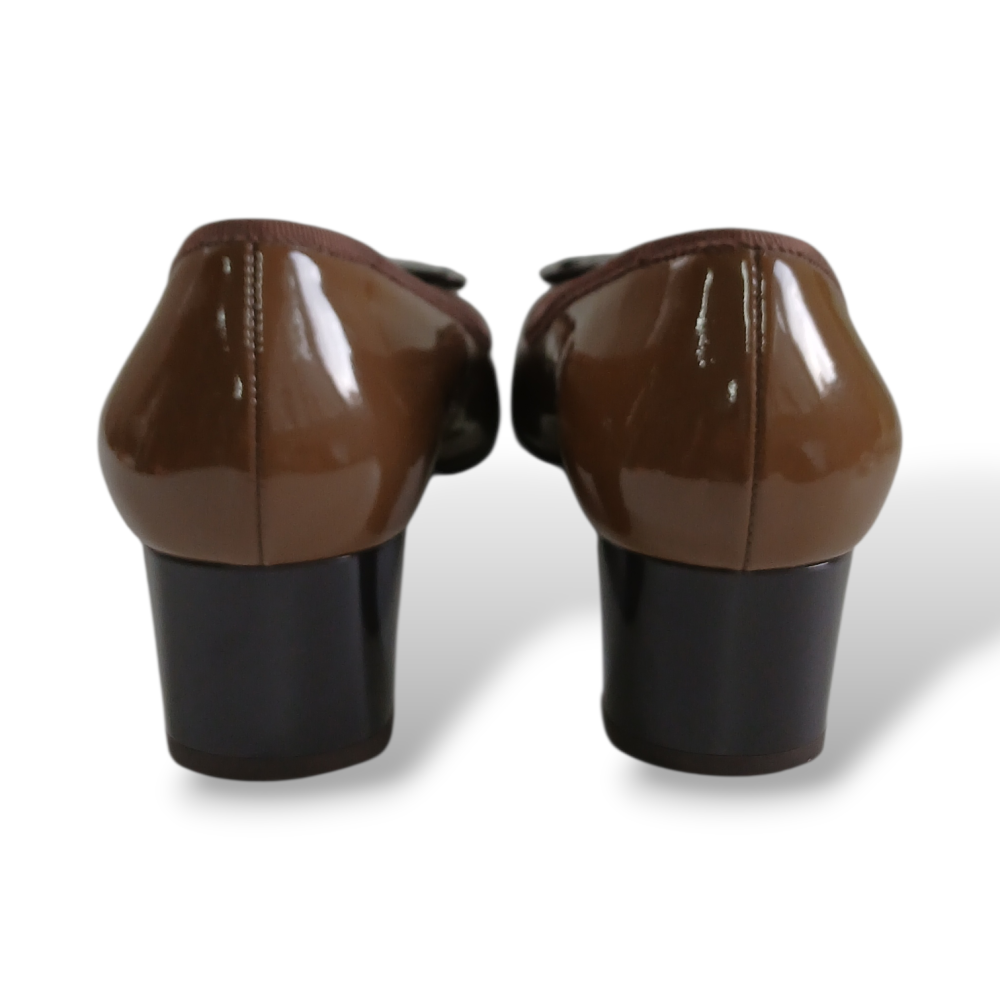 Scarpin Salvatore Ferragamo Marrom Verniz com Fivela-40