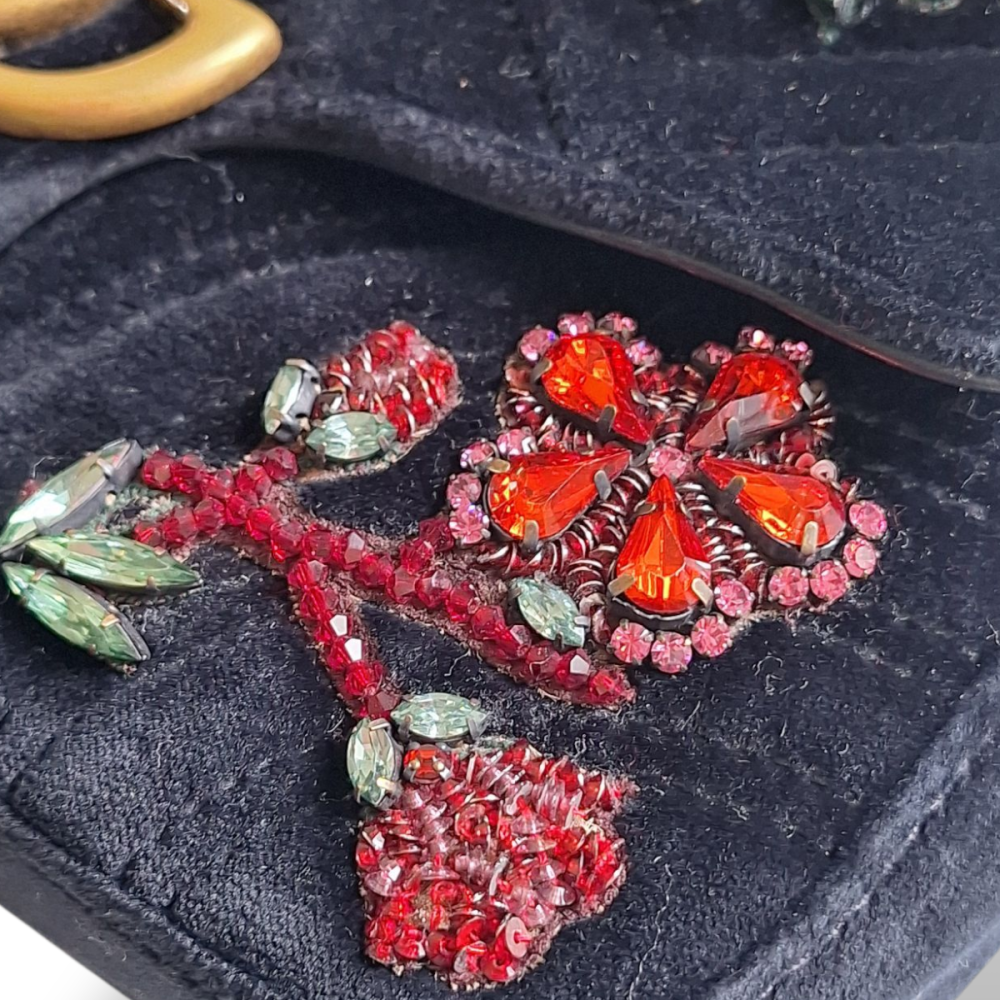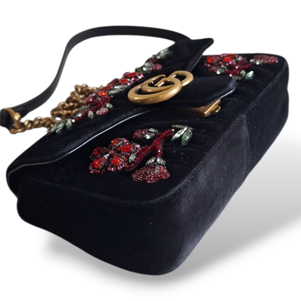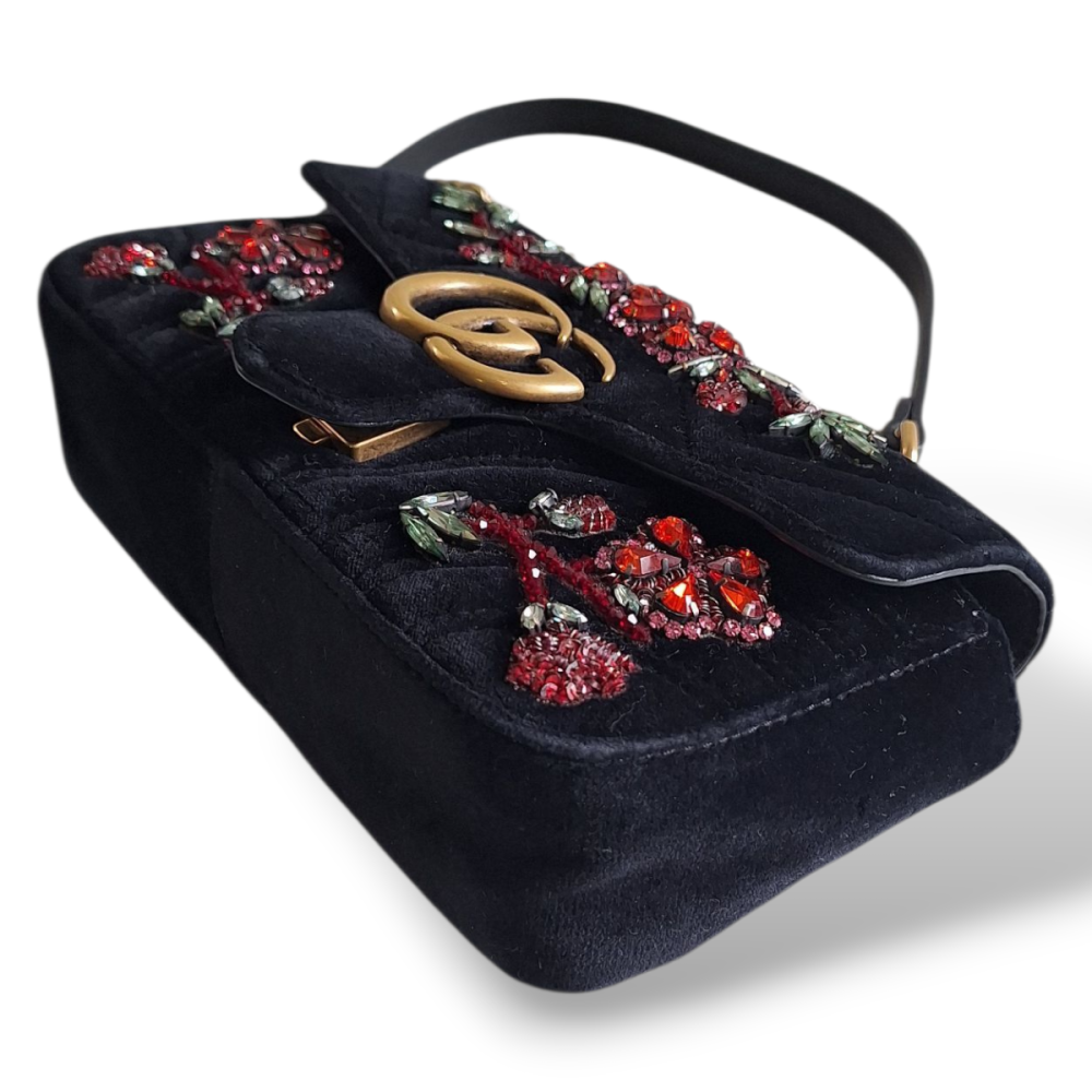 Bolsa Gucci Marmont Small em Veludo Preto com Aplicações