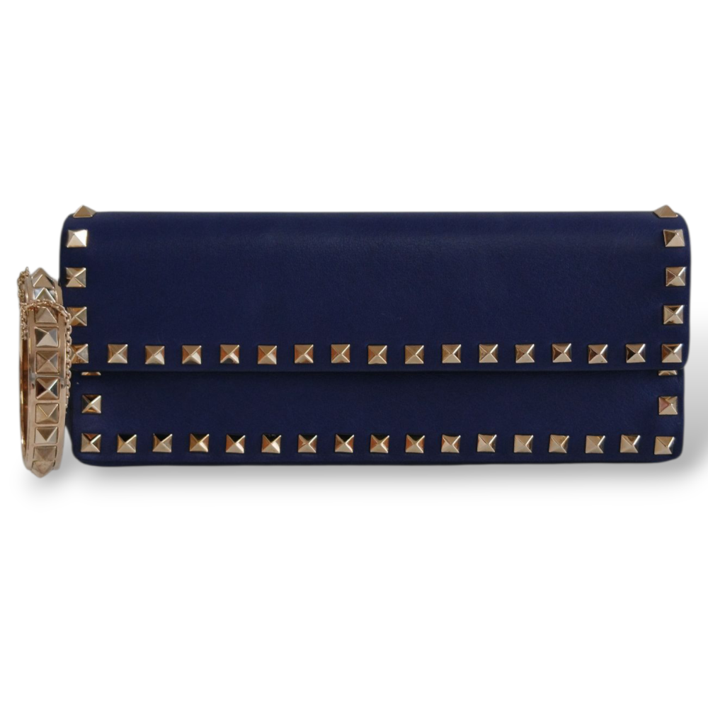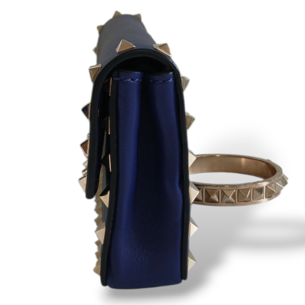 Clutch Valentino Bracelete em Couro Azul Ferragem Light Gold