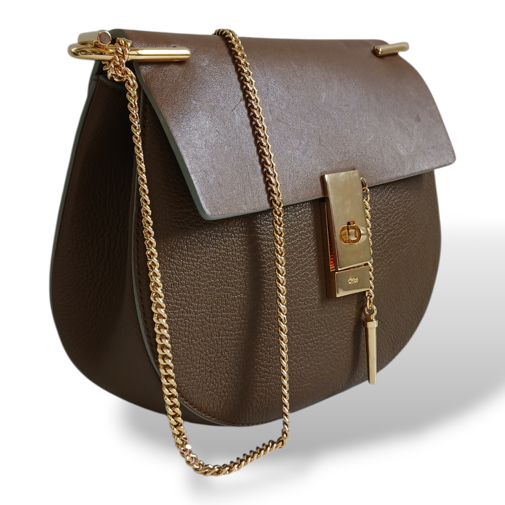 Bolsa Chloé Drew Marrom Ferragens Gold