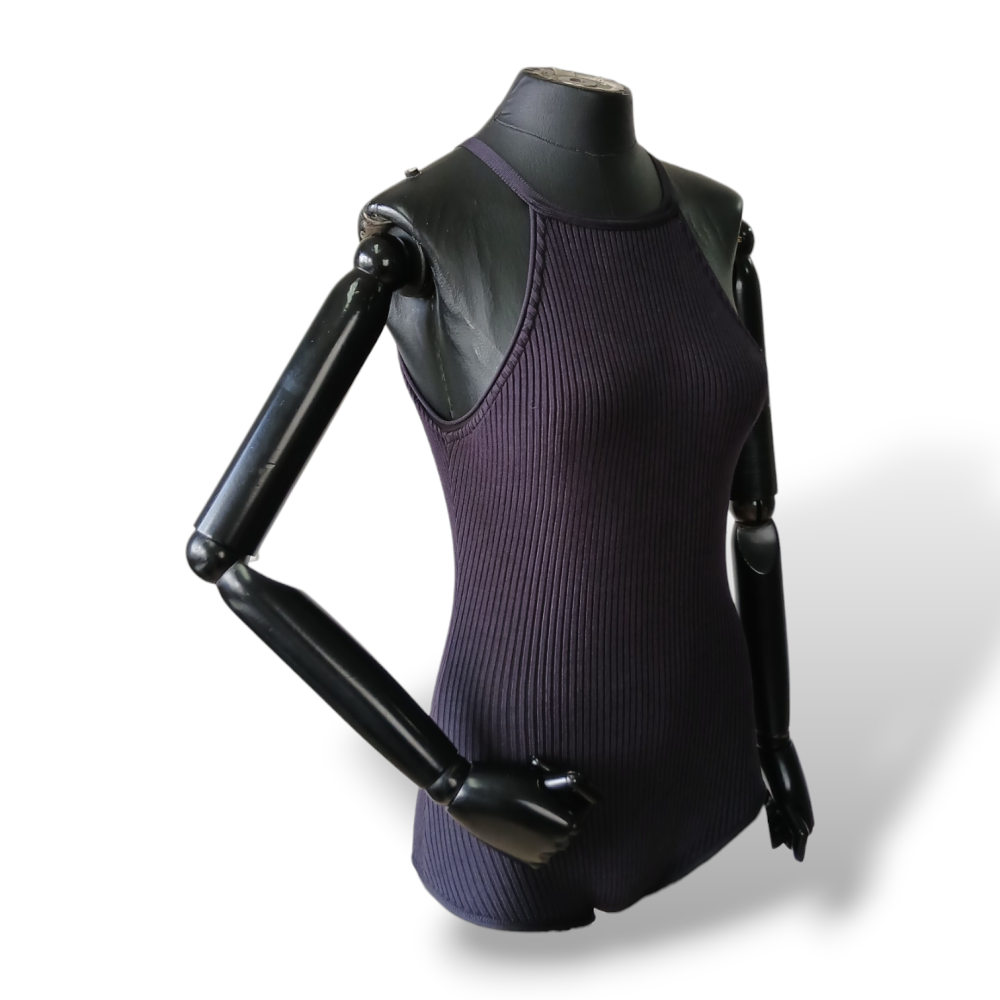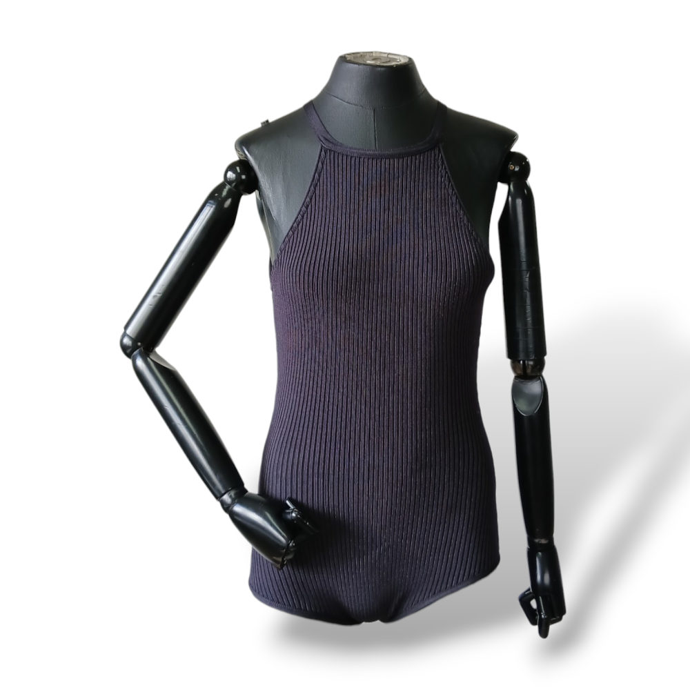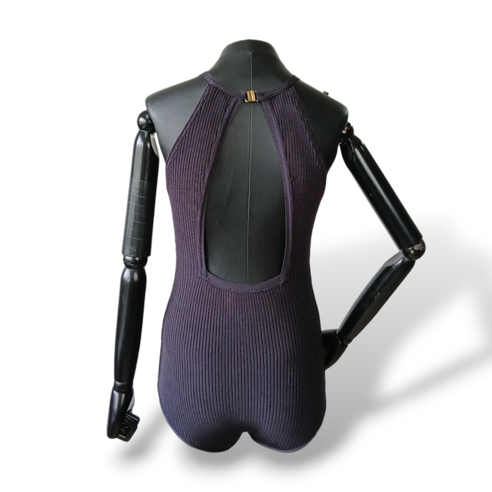 Peça em excelente estado de conservação. Possui tiras de elástico nos ombros, recorte na região posterior, fecho por colchete.