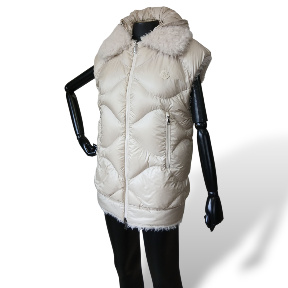 Colete Moncler Off White com Pelo Interno e Capuz-36