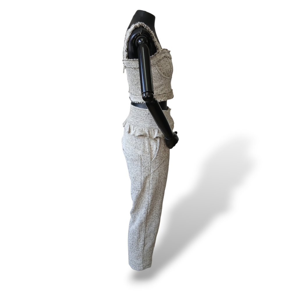 Peça em excelente estado de conservação. Possui zíper na região posterior do top, calça com bolsos na região frontal e posterior.
