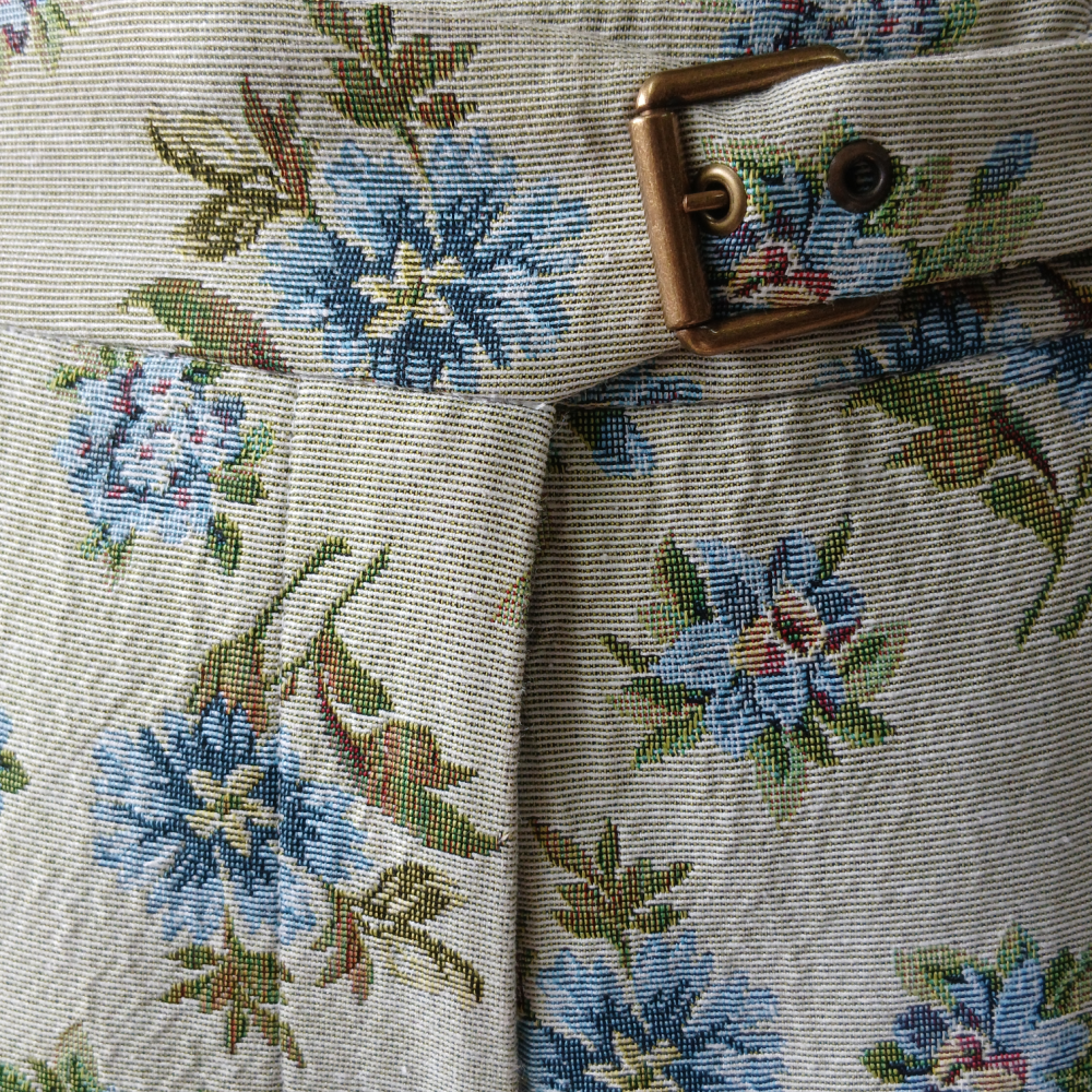 Peça em excelente estado de conservação. Possui estampa floral, detalhe de fivela no cós, fecho por botão de pressão e zíper.