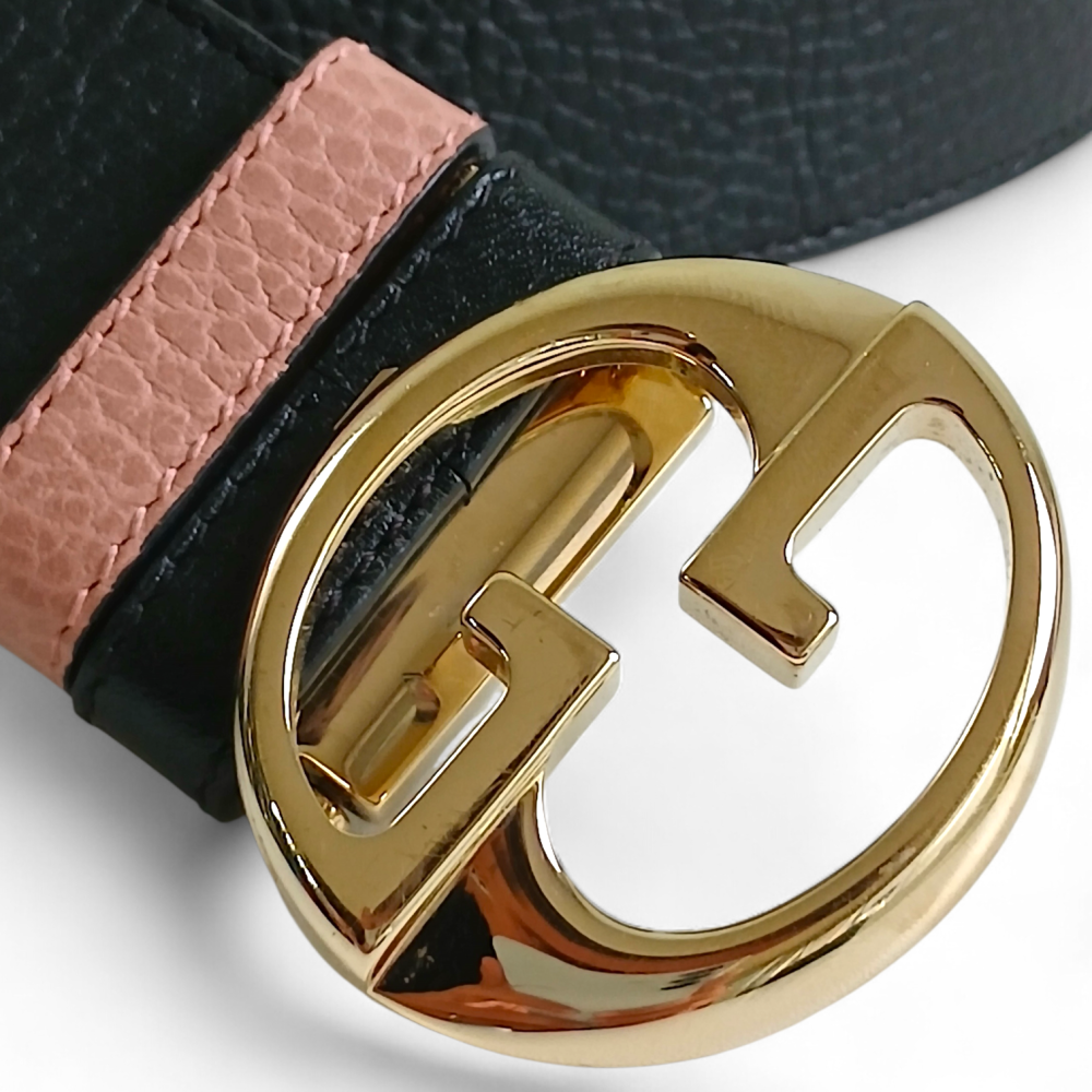 Cinto Gucci Double Face Preto x Rosa Ferragem Dourada