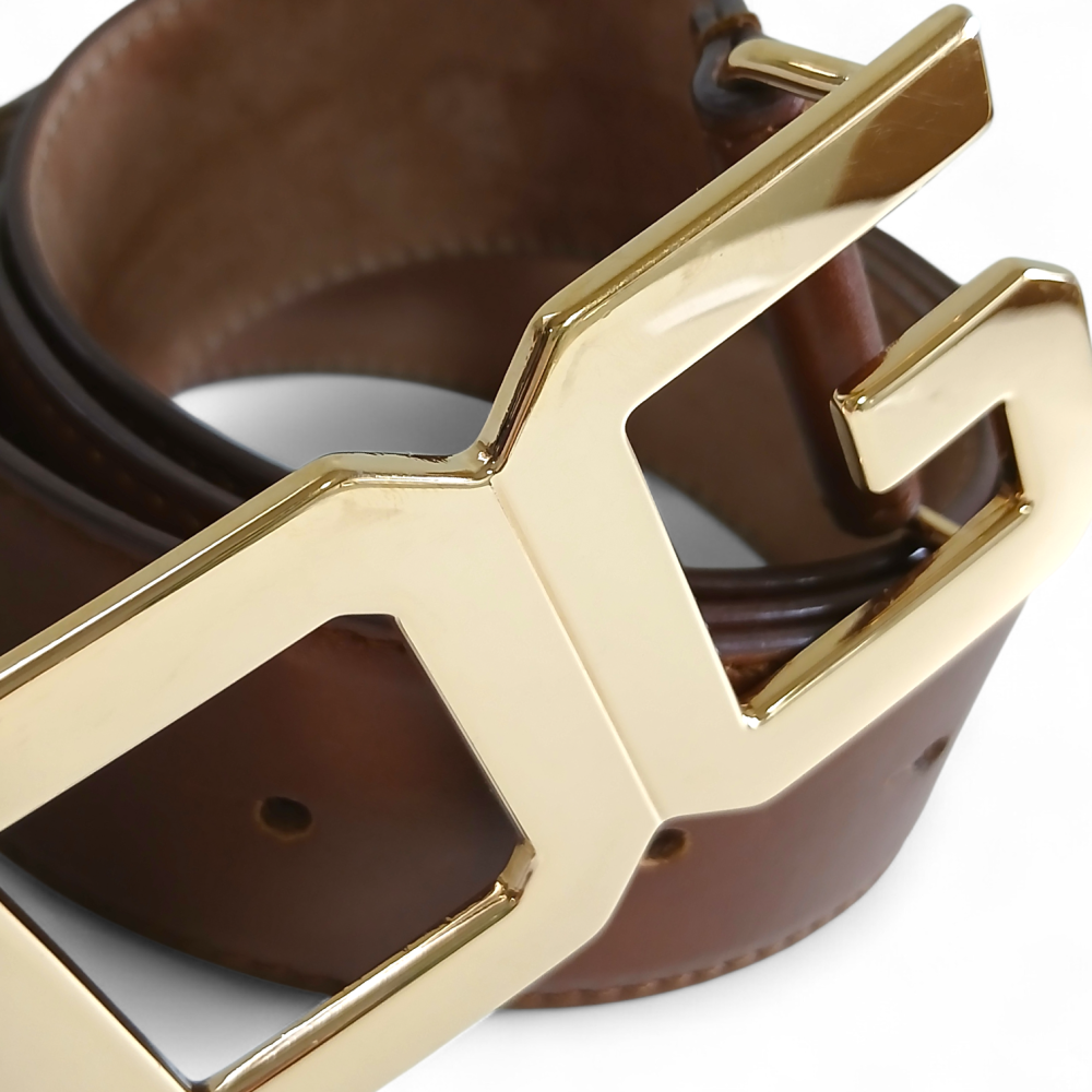 Cinto Dolce Gabbana Marrom Fivela Dourada