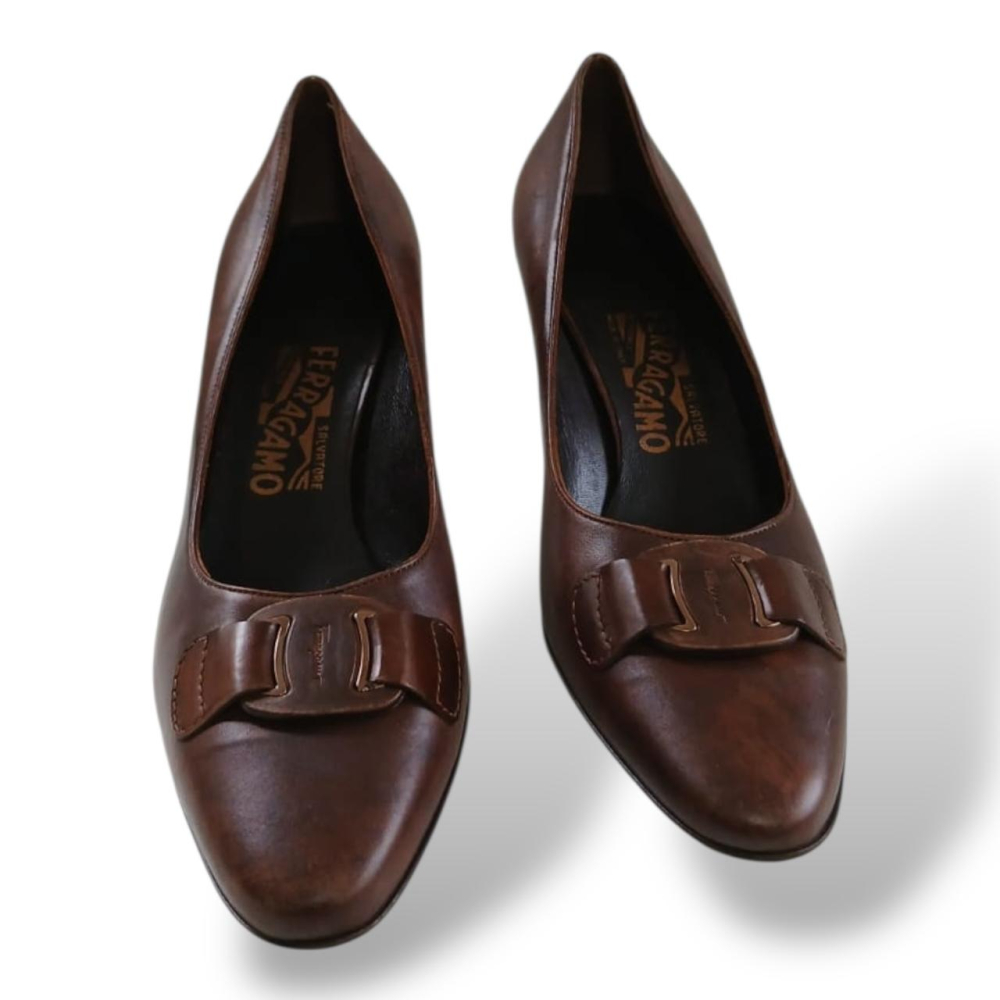 Scarpin Salvatore Ferragamo Marrom com Fivela-36