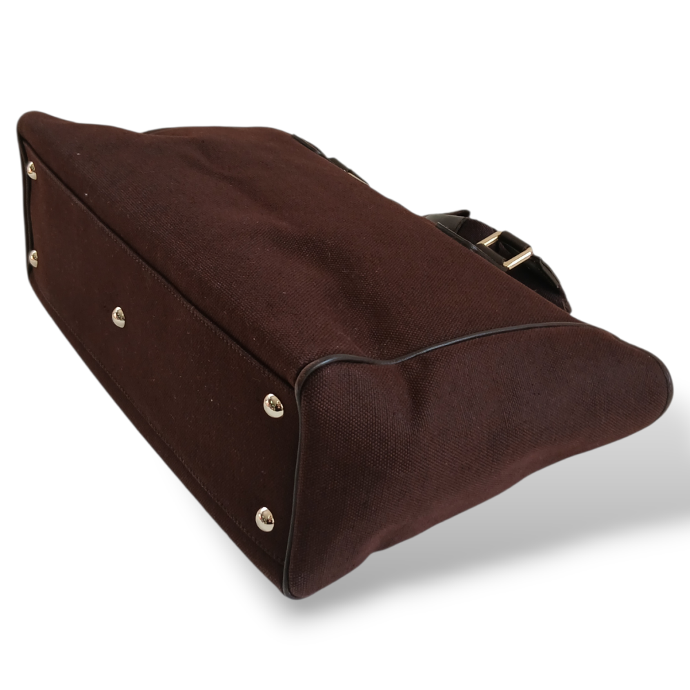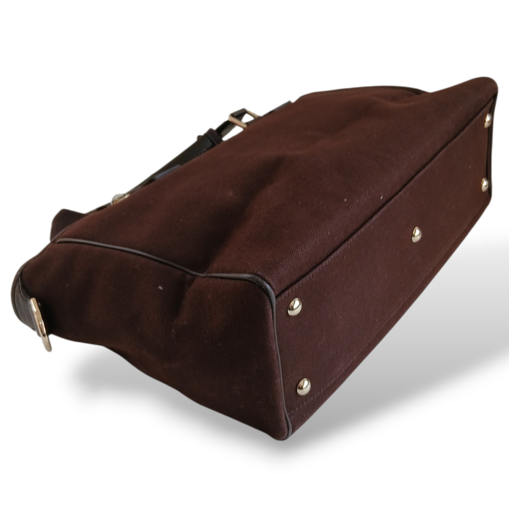 Bolsa Celine Medium Luggage confeccionada em couro togo na cor fendi . O modelo retangular de tamanho médio possui compartimento único com um bolso interno e um externo frontal, sendo ambos com fecho em zíper. Conta com alça dupla estruturada, medida15 cm,  puxador do zíper frontal, ferragens douradas, nome da marca em baixo relevo e fech..