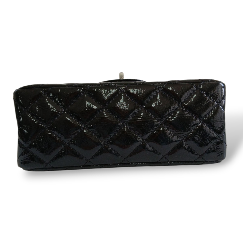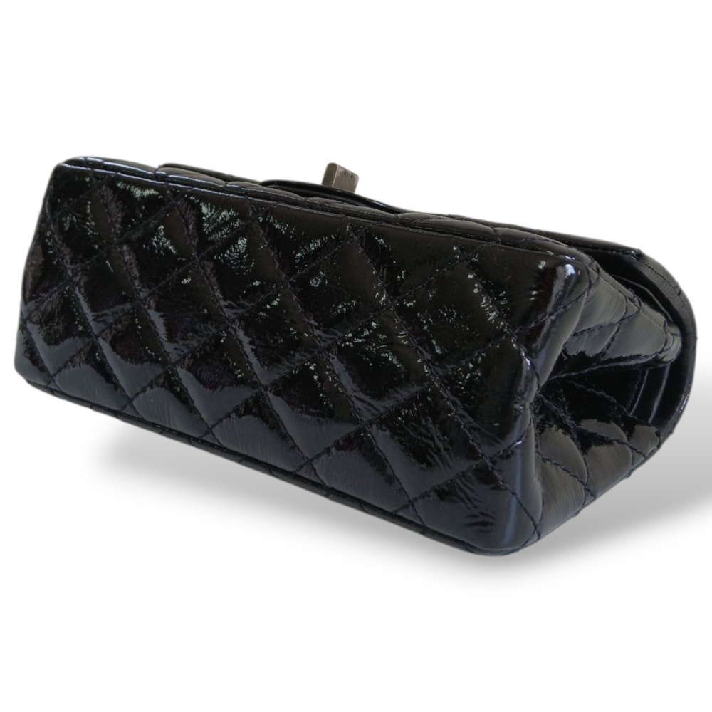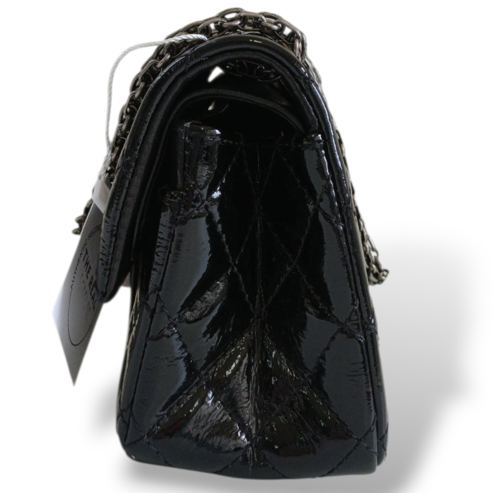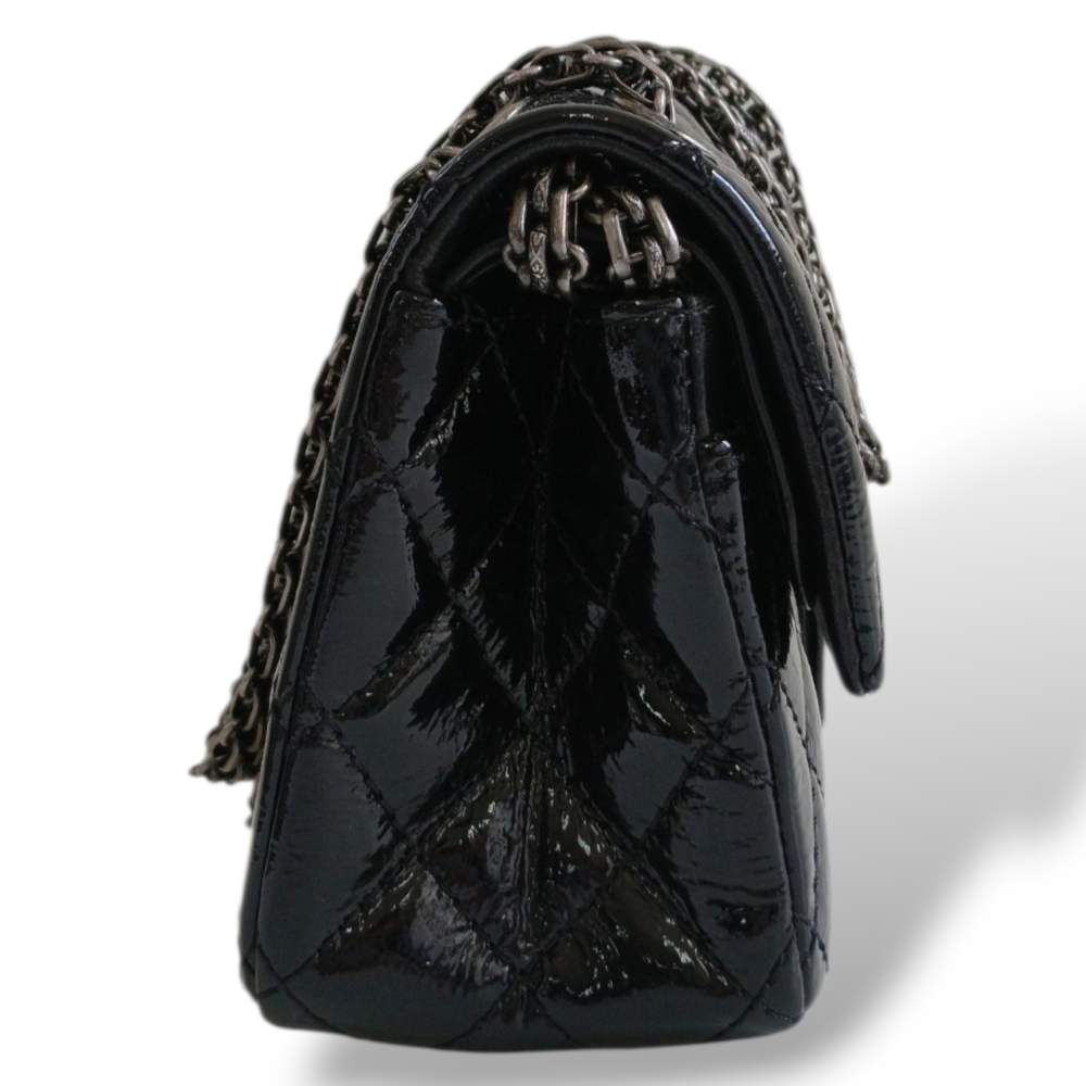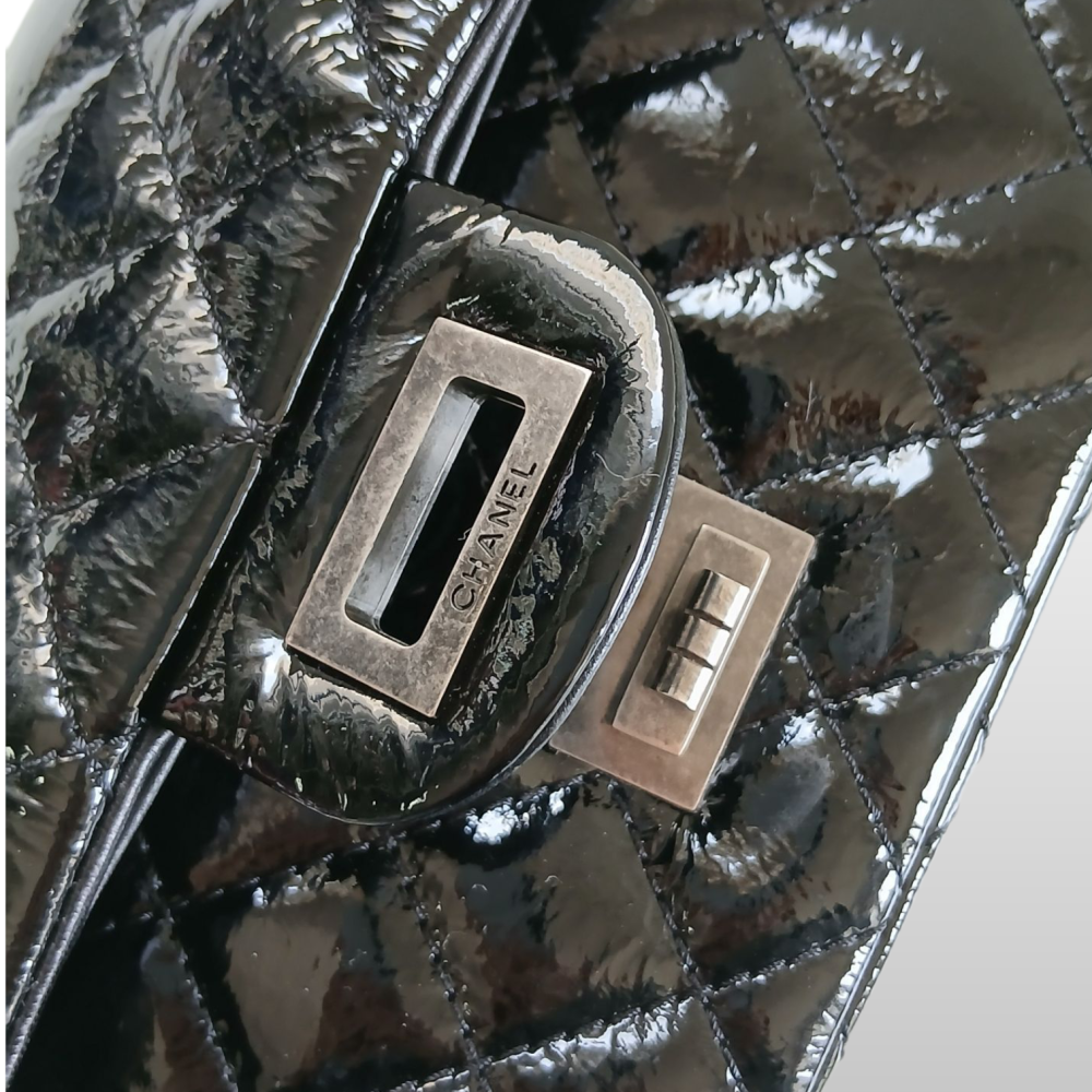 Bolsa Chanel Clássica 2.55 de Matelassê em Verniz Preta com ferragem grafite