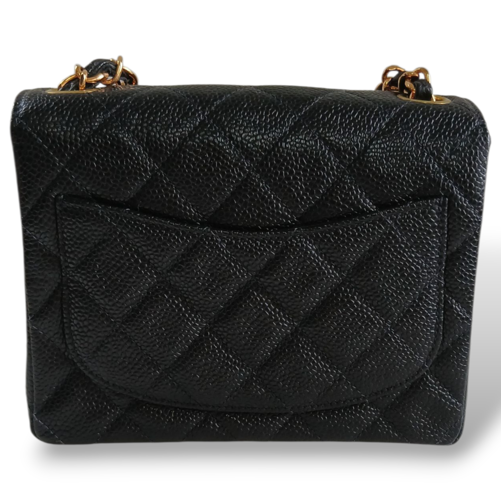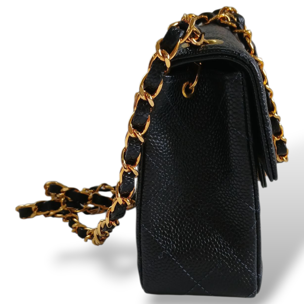Bolsa Chanel Mini Flap Preta em Couro Caviar e Ferragens Douradas