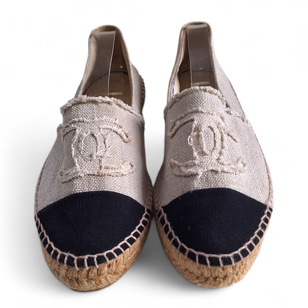 Alpargata Chanel Bege e Marinho Peça em ótimo estado de conservação. Acompanha  dust bag. Tamanho: 35 sola | 33 BR..